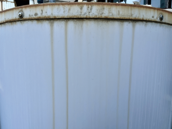 雨の跡のようにも見えますが、雑巾で拭いても落ちない——そんな場合は「錆汁(さびじる)」が発生している可能性があります。