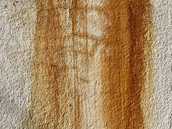 鉄分を含んだ水が外壁をつたい、乾いたあとに茶色い筋やシミとなって残ります。